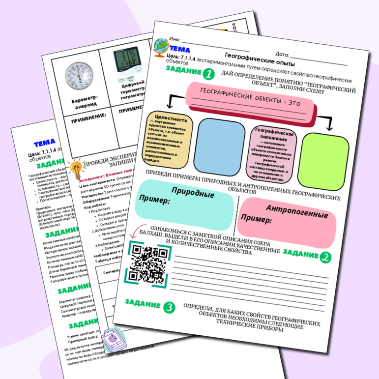 Рабочий лист С ОТВЕТАМИ по географии за 7 класс 1 четверть. Тема: Географические опыты Цель: 7.1.1.4 экспериментальным путем определяет свойства географических объектов Авторский рабочий лист включает уникальные задания, разработанные с учетом возрастных особенностей учеников. Они направлены на углубление знаний, развитие аналитического мышления и подготовку к экзаменам. Рабочий лист идеально подходит для формативного оценивания, обеспечивая систематическое изучение материала и индивидуальную работу с учениками. Наличие ответов помогает учителям быстро проверять задания и дает ученикам возможность самостоятельно контролировать свои знания.