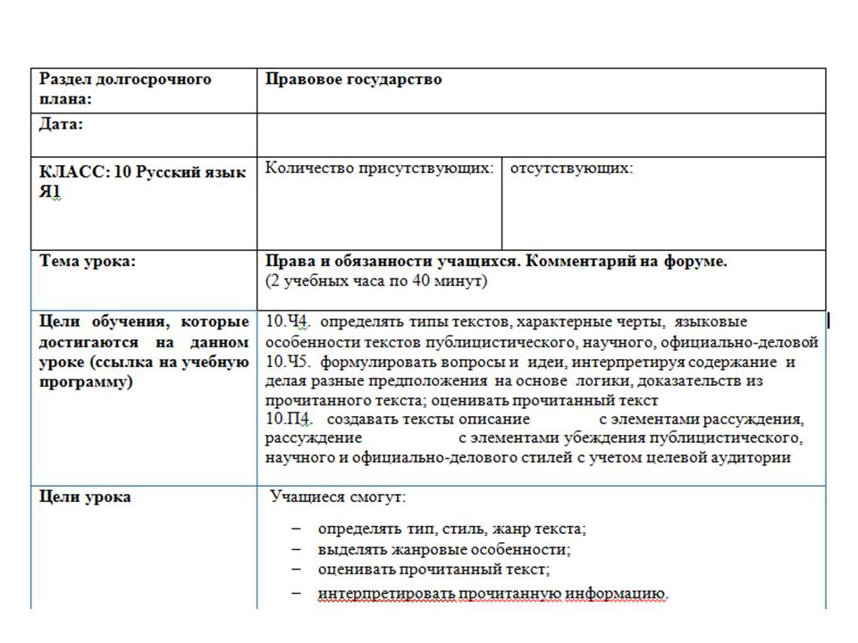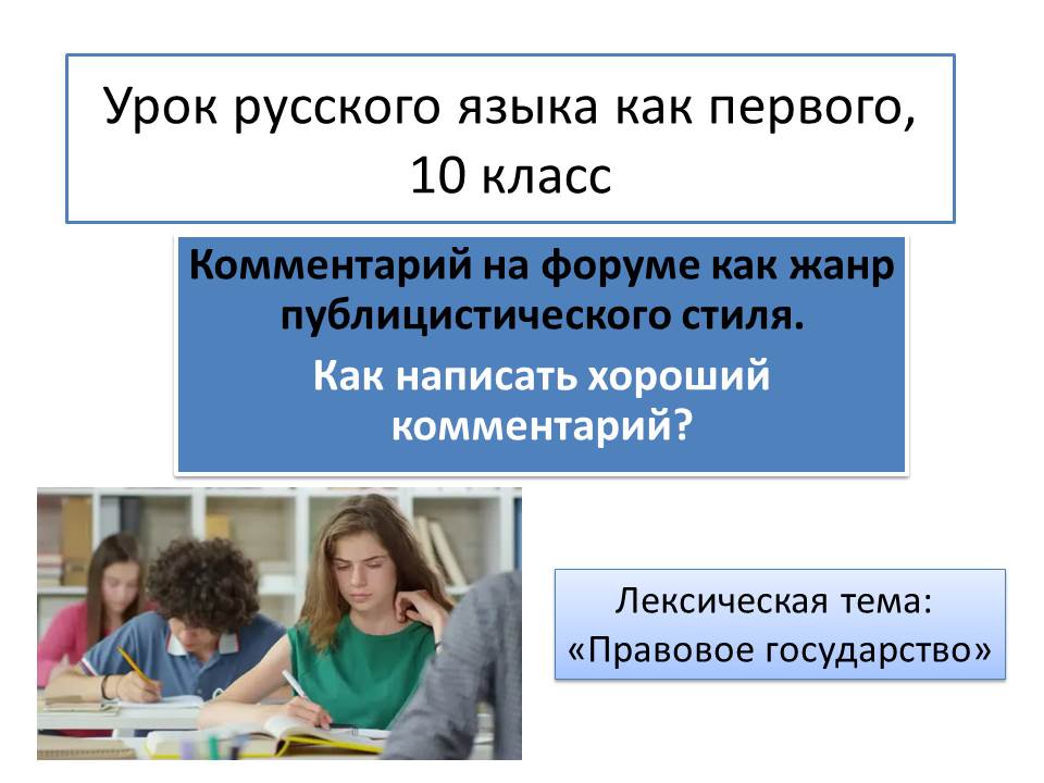 Поурочный план урока русского языка в 10 классе. Комментарий на форуме как жанр публицистического стиля.