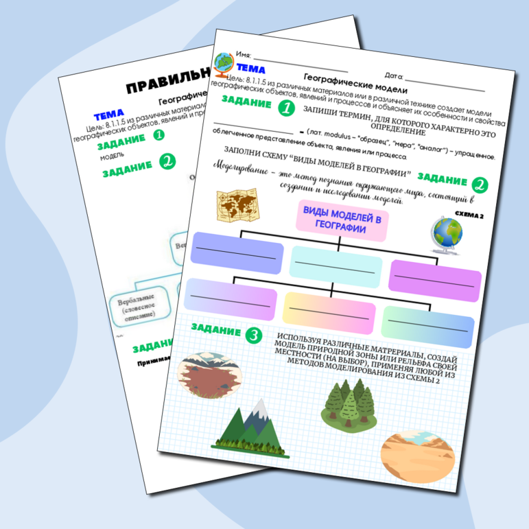 Рабочий лист С ОТВЕТАМИ по географии за 8 класс 1 четверть. Тема: Географические модели Цель: 8.1.1.5 из различных материалов или в различной технике создает модели географических объектов, явлений и процессов и объясняет их особенности и свойства