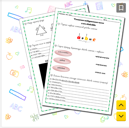 Рабочий лист "Сложение натуральных чисел и его свойства"