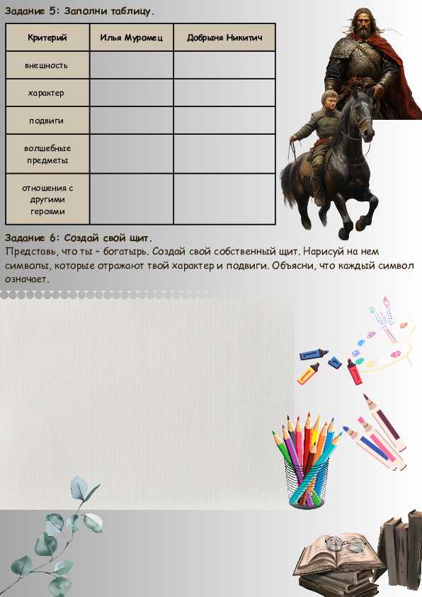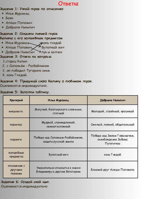 Рабочий лист по литературе "Герои былин"