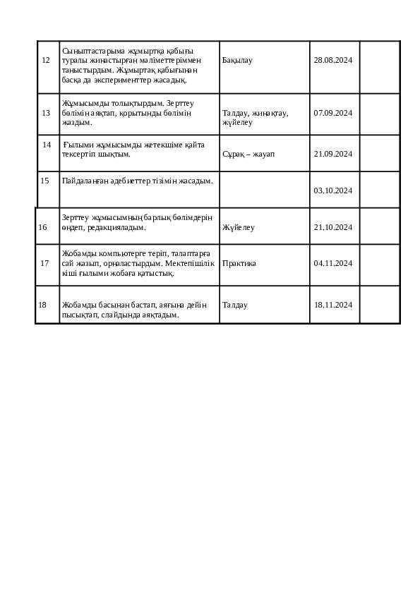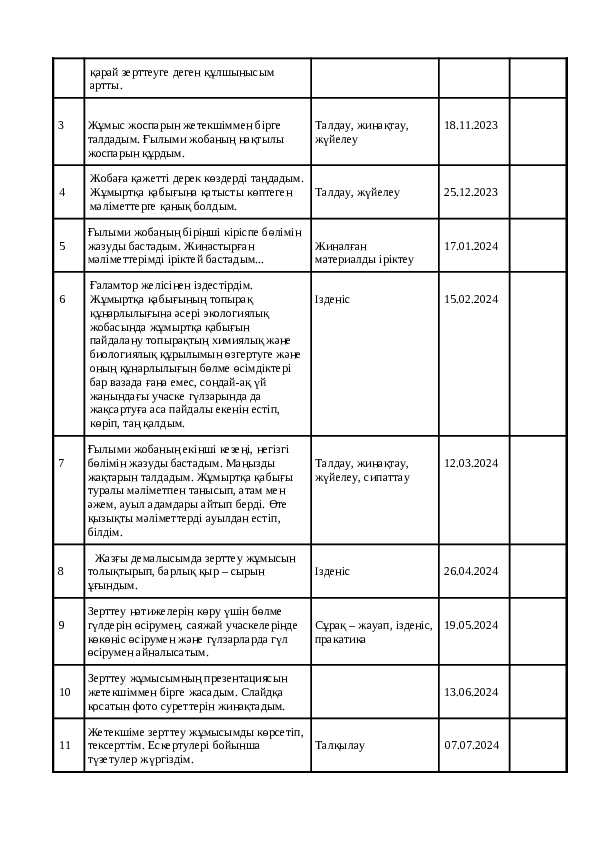 Ғылыми жобаға арналған оқушы күнделігі
