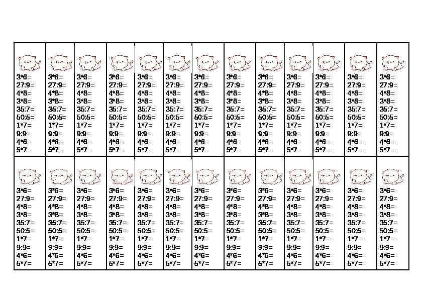 Вклейки на поля тетради "Таблица умножения от 1-5"