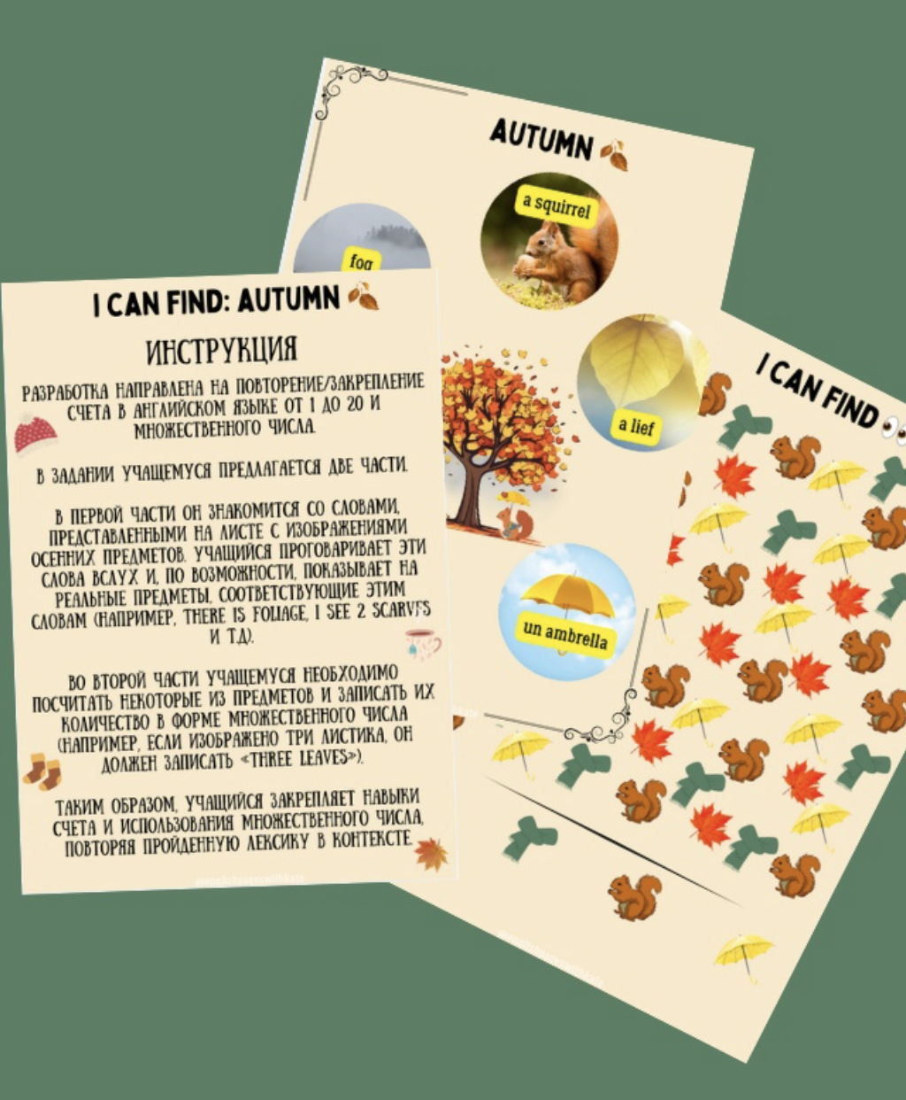 Методическая разработка для повторения/закрепления счета и множественного числа.