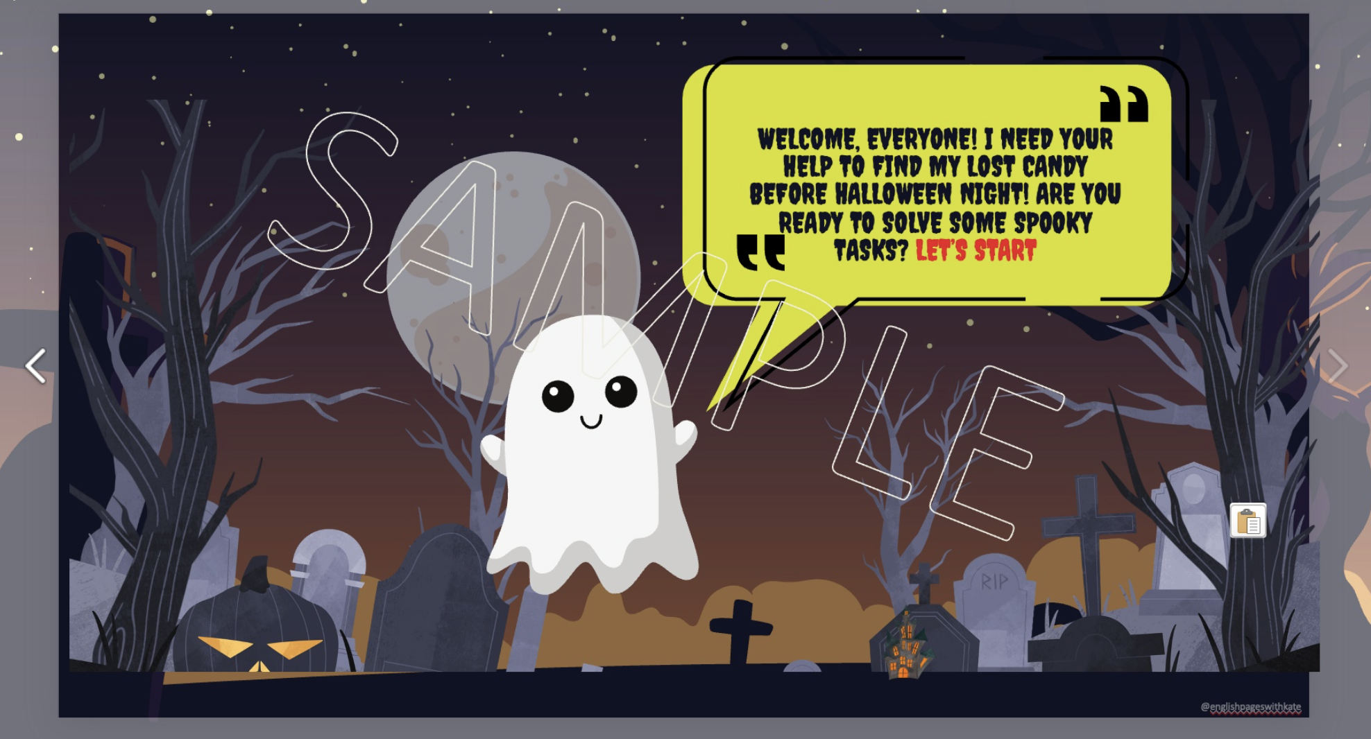 Завершите занятие, спросив учащихся об их любимом занятии из квеста. Можно раздать «призрачные» конфеты или наклейки в качестве награды или наградить каждого хорошей оценкой. В конце поздравьте класс с тем, что он помог привидению найти его конфеты и завершил приключение на Хэллоуин!