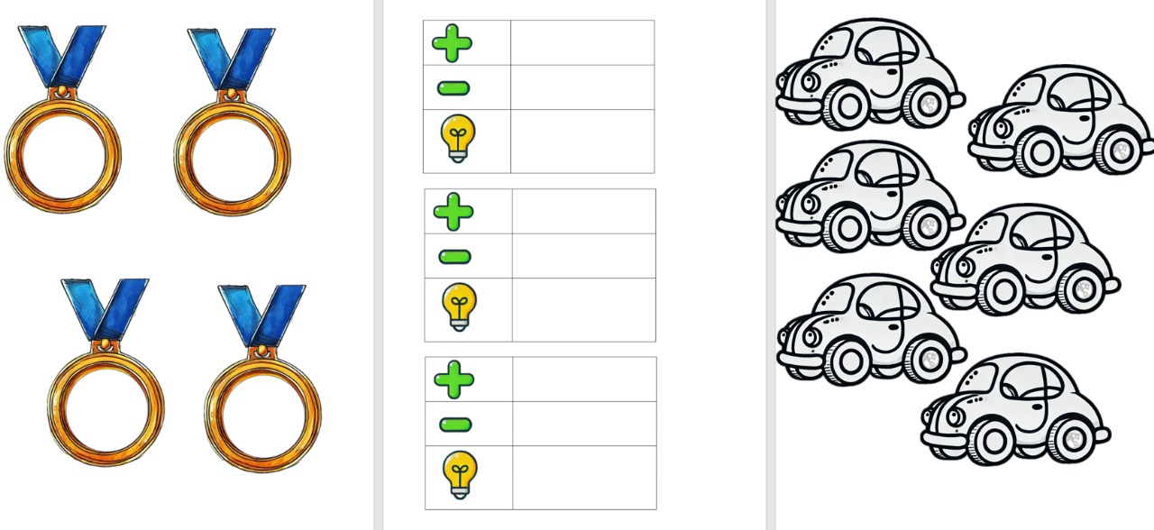 3. Карточки с медалями, плюсами и машинами (третья картинка):