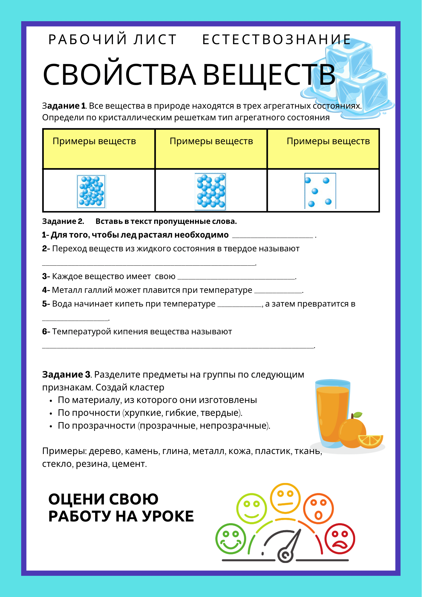 Рабочий лист Свойства веществ