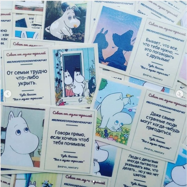 Встречайте новый набор мотивационных цитат из серии #ВеликиеПлохомуНеНаучат – «Совет от муми-троллей».