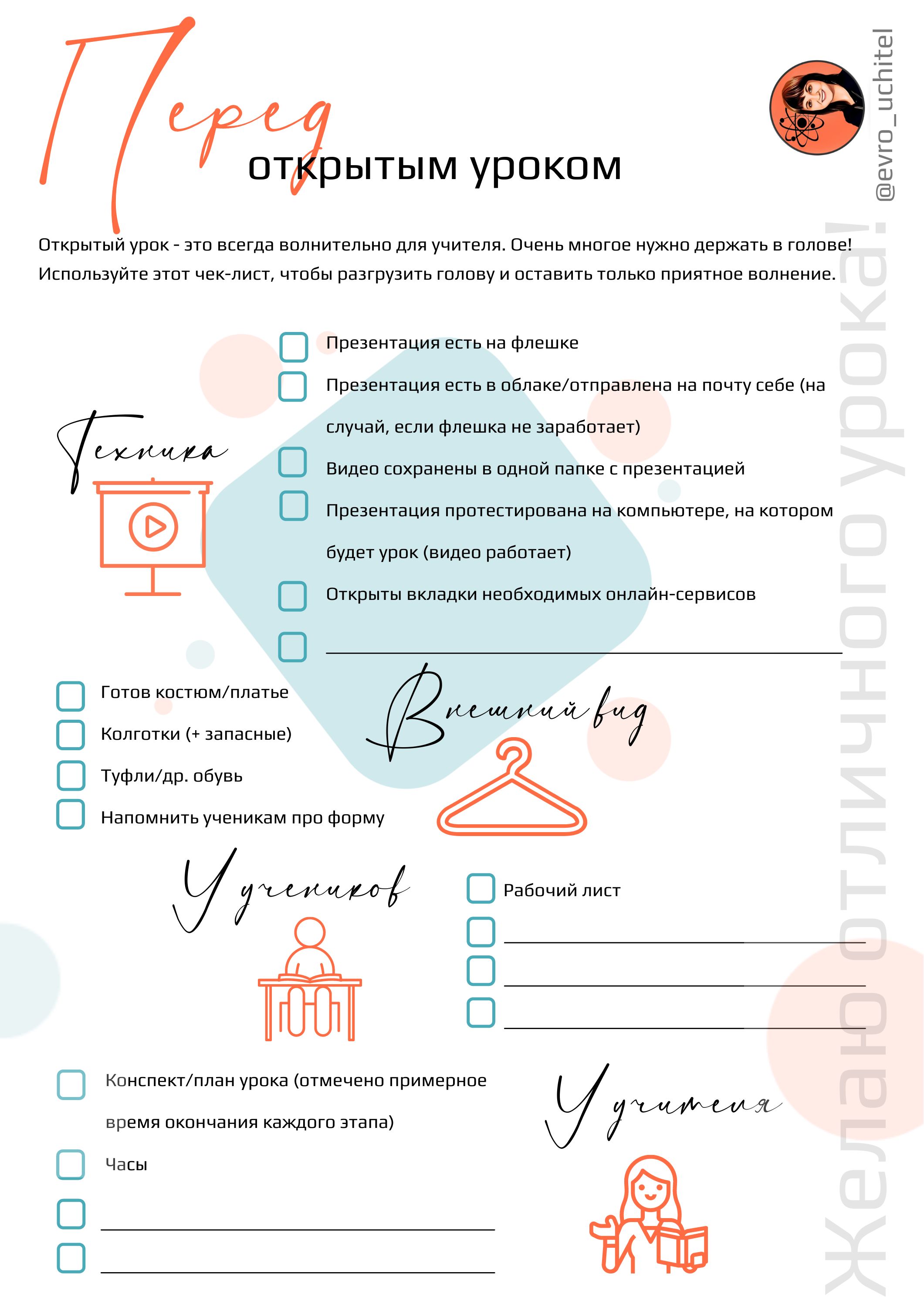 Чек-лист "Перед открытым уроком"