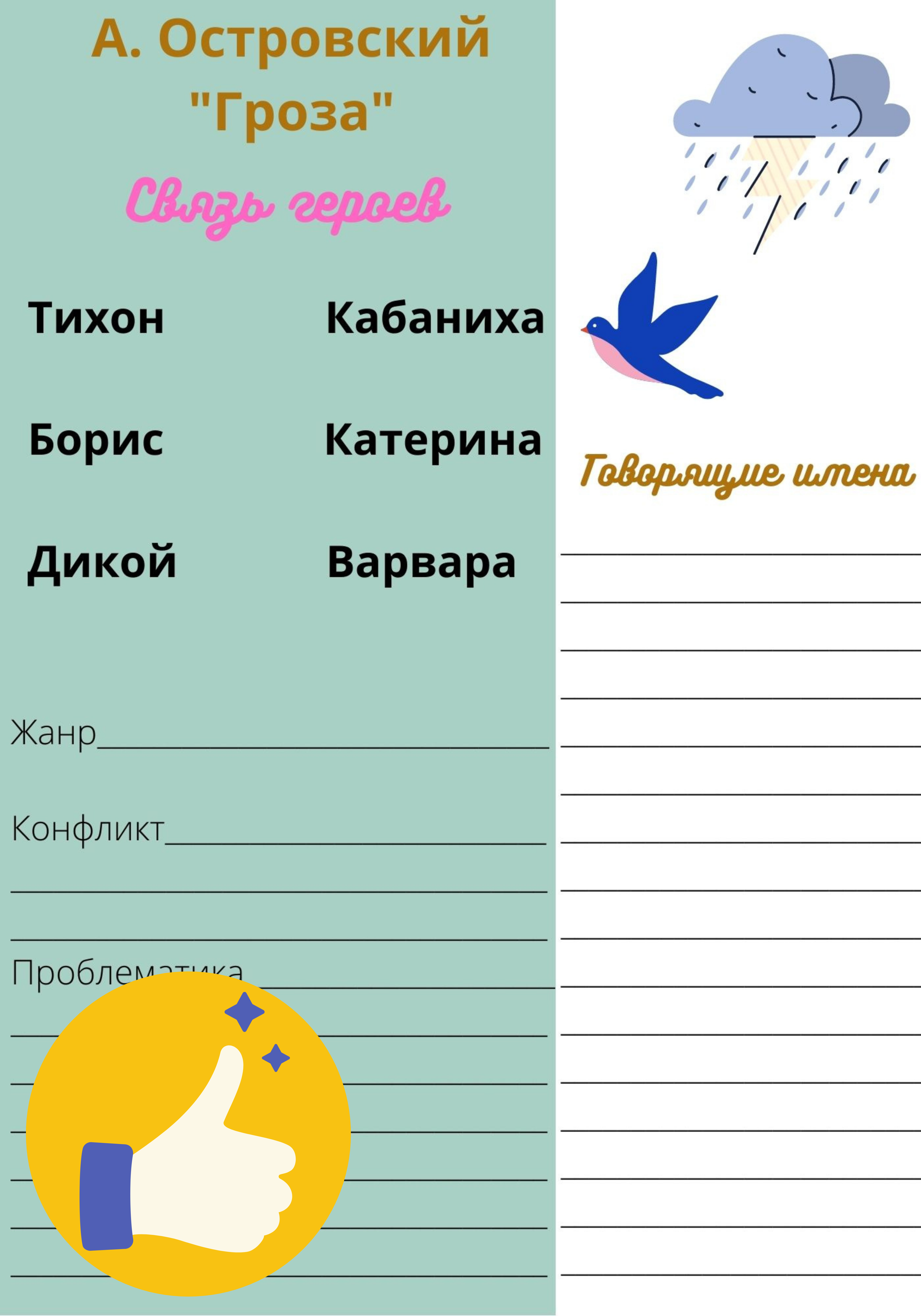 Чек-листы для урока литературы по теме "Суд. А. Островский "Гроза""