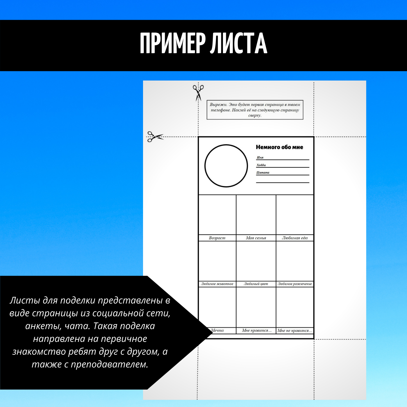 Предложите ученикам рассказать о себе (1 страница шаблона):