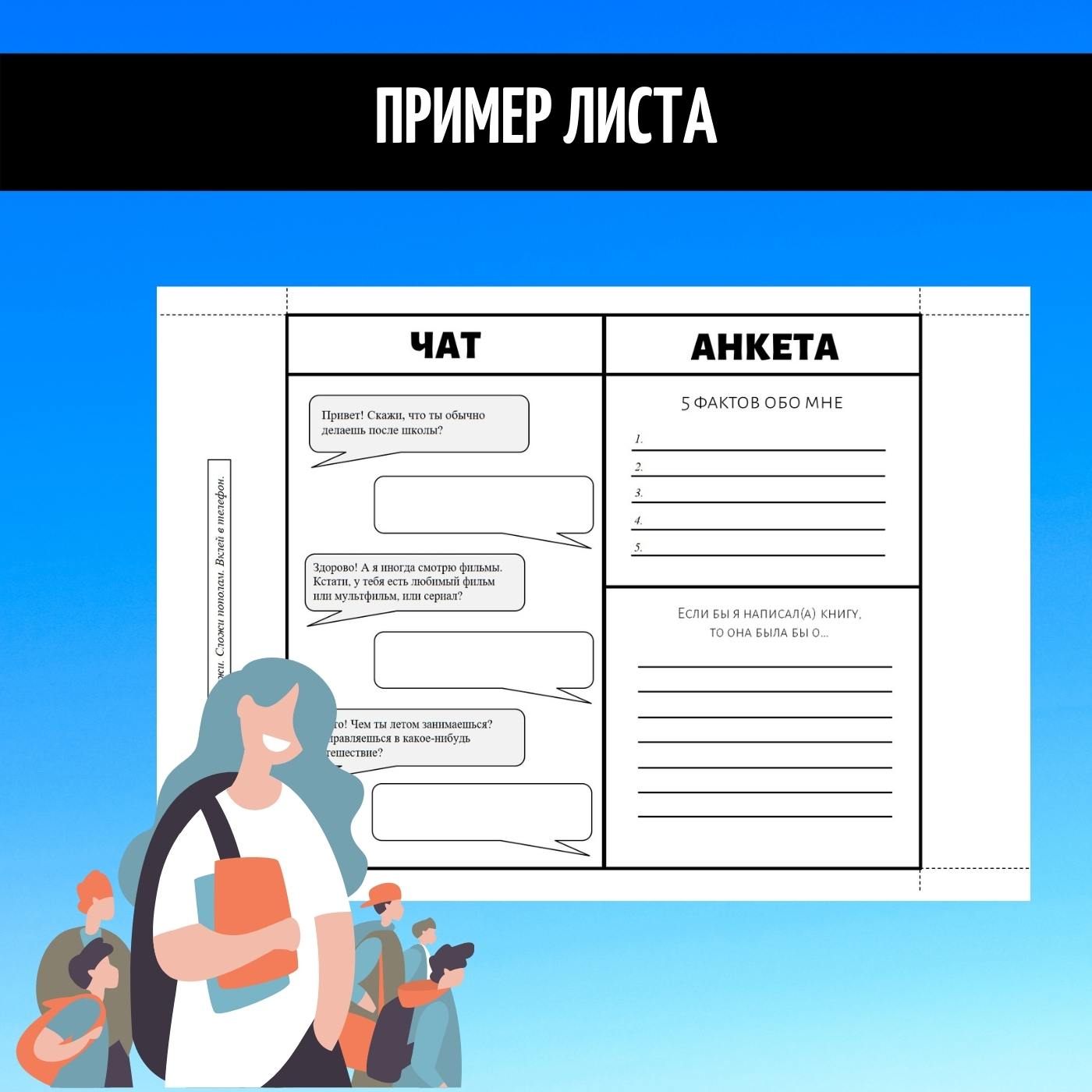 Вовлеките ребят в диалог с помощью "чата", чтобы узнать о (2 страница шаблона):