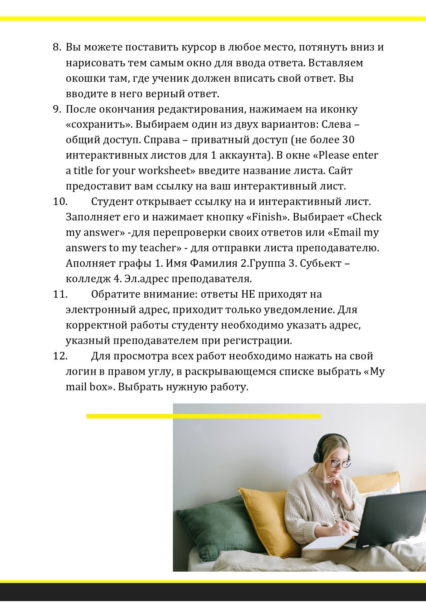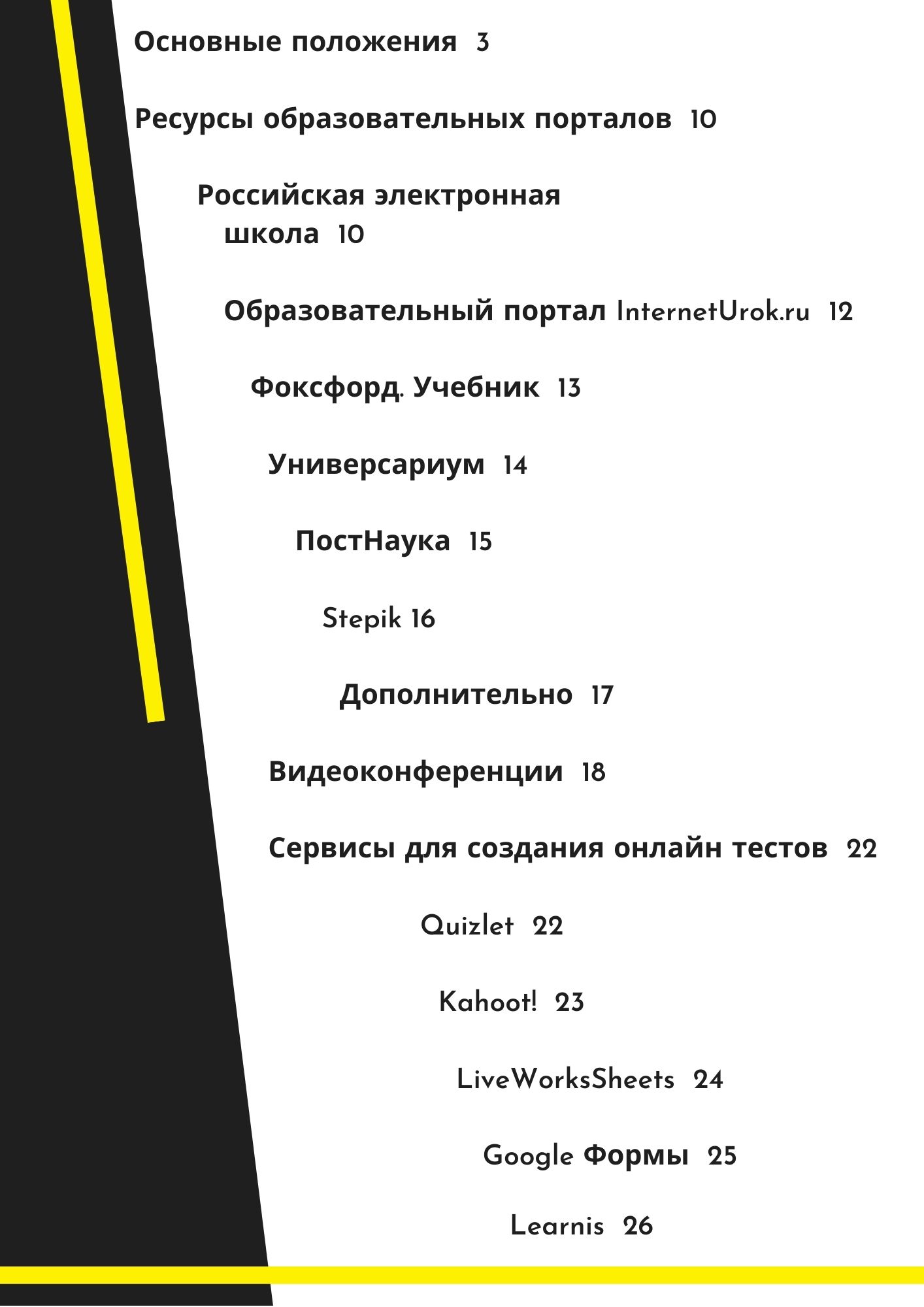 Пособие содержит описание Электронных образовательных ресурсов и краткие пошаговые инструкции для начала их использования. На 28 страницах описаны ресурсы: Kahoot!; LiveWorksSheets; Quizlet и другие.
