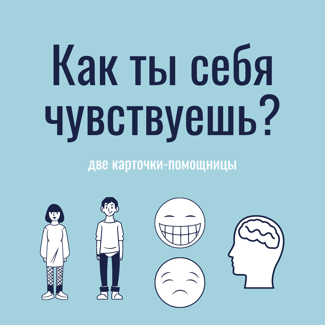 Две карточки-помощницы для оценки состояния в начале и в конце урока. Содержат подсказки для обсуждения (тело, душевное состояние, голова).
