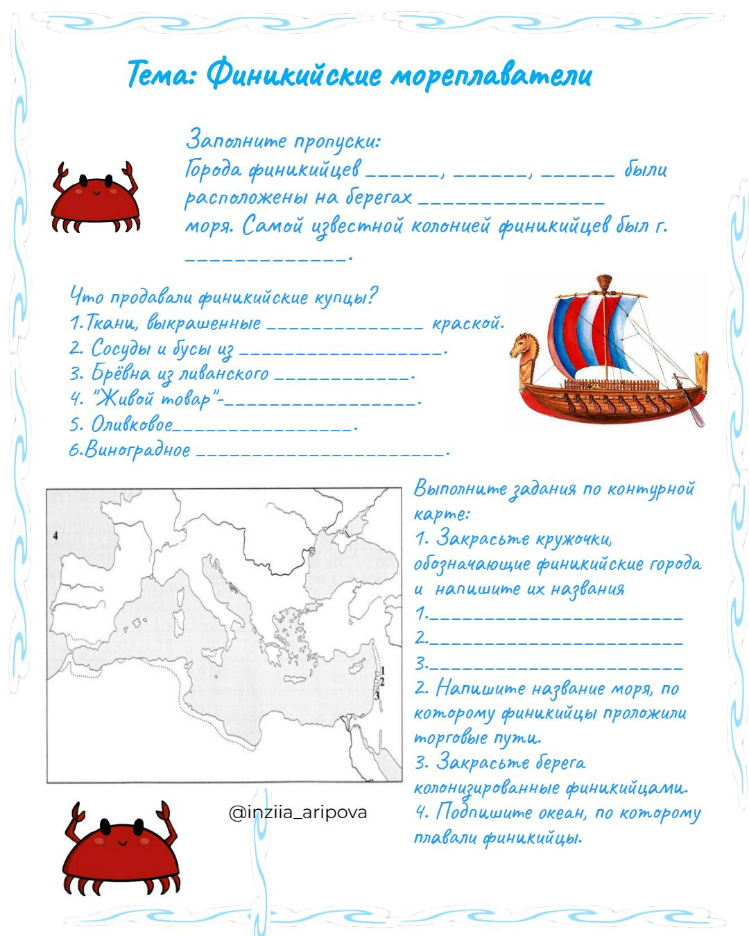 Рабочий лист к уроку "Финикийские мореплаватели"