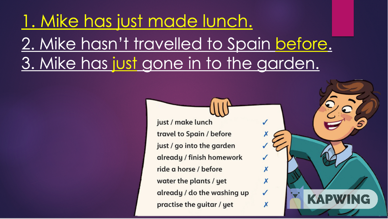 Использование Present Perfect с ключевыми словами как just, already, yet, before.