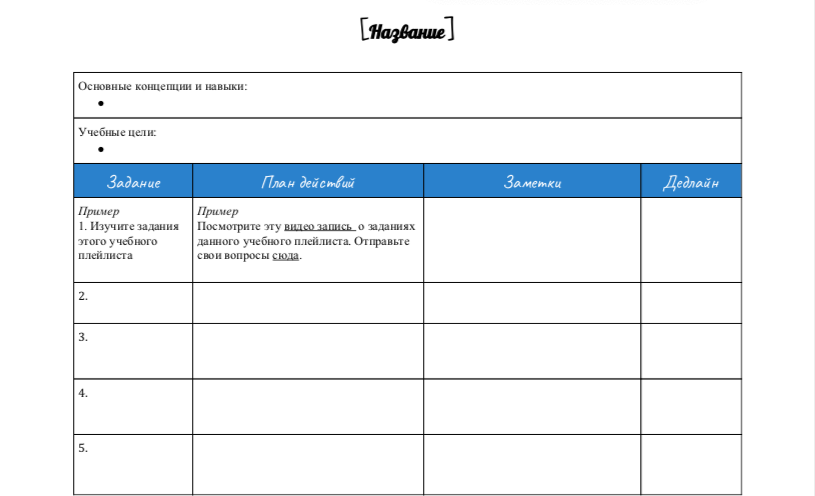 4. Шаблон для использования Учебных Плейлистов + объяснение