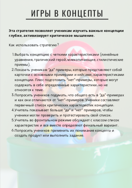 Игра в концепты - это стратегия позволяет ученикам изучить важные концепции глубже активизирует критическое мышление.