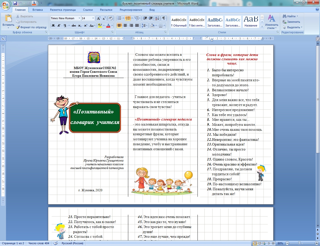 Позитивный словарь педагога
