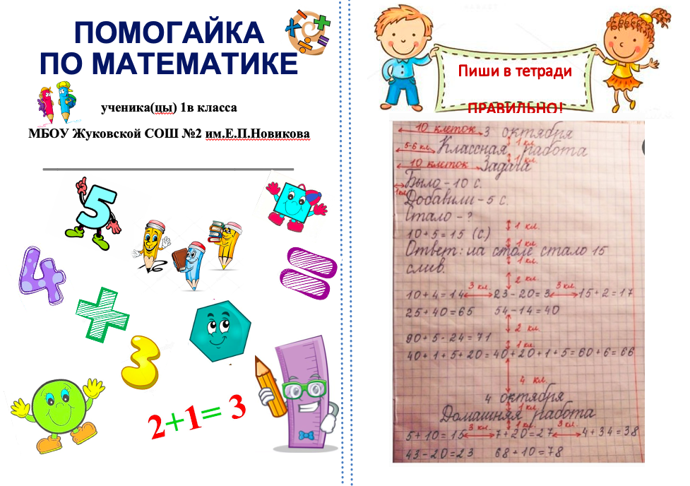 Помогайка по математике для учеников 1 класса с памятками по различным темам, памятку нужно распечатать и сложить