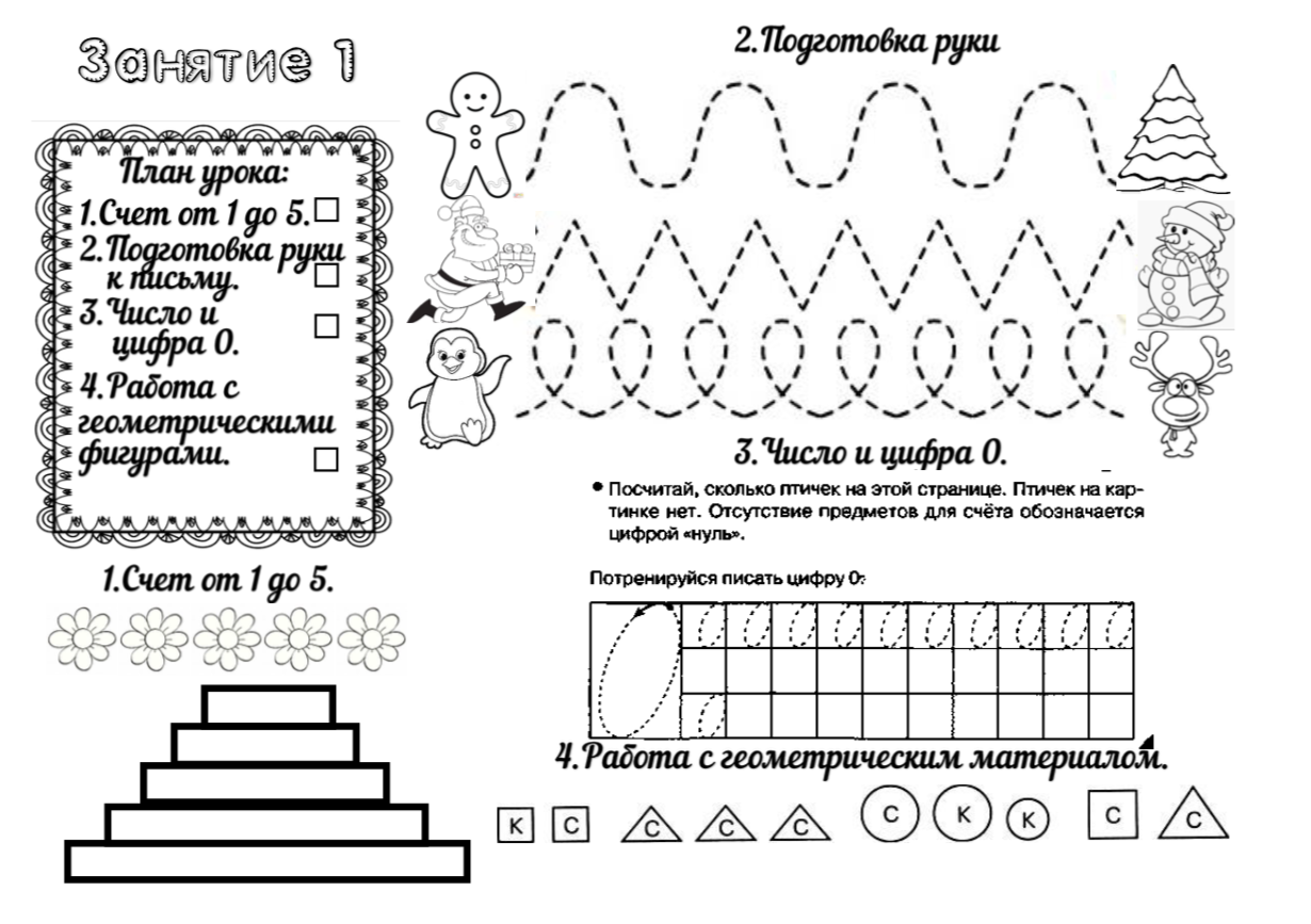 Рабочий лист для подготовке к школе- Число и цифра 0, счет от 1 до 5