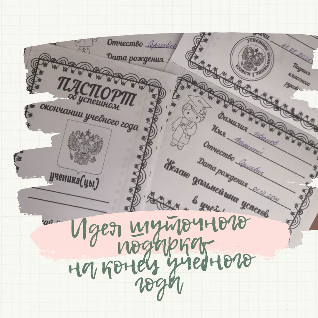 Шуточный паспорт об успешном окончании учебного года с 1-11 классы