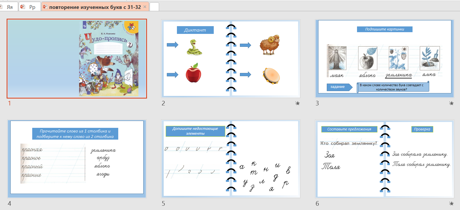 Презентации к прописям В. А. Илюхиной составлены в соответствии с методическим пособием.