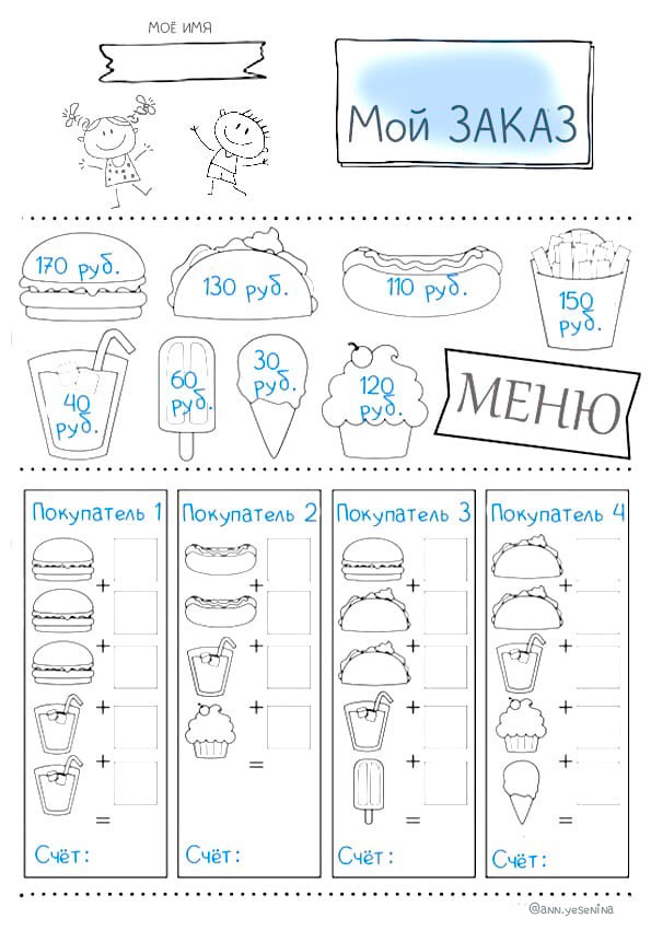Задание: Посчитать чек каждого клиента. Сравнить чеки. Сделать свой заказ и посчитать свой чек.