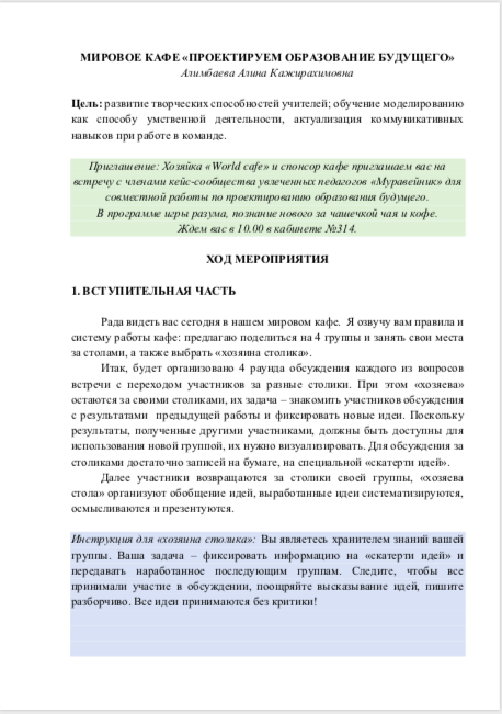 МИРОВОЕ КАФЕ «ПРОЕКТИРУЕМ ОБРАЗОВАНИЕ БУДУЩЕГО»