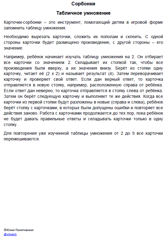Карточки-сорбонки – это инструмент, помогающий детям в игровой форме запомнить таблицу умножения.