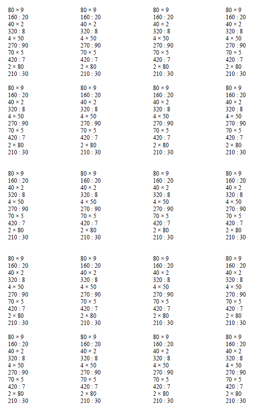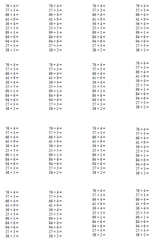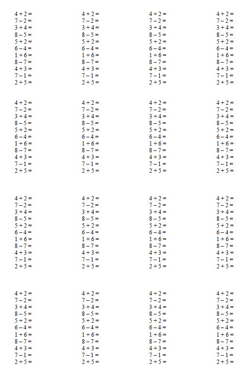 С 1 по 4 класс необходимо подготовить "столбики" с определённым видом сложения/вычитания, умножения/деления.