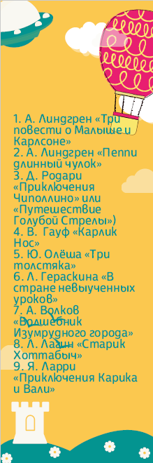 Закладка для книги со списком книг для чтения в 3 классе