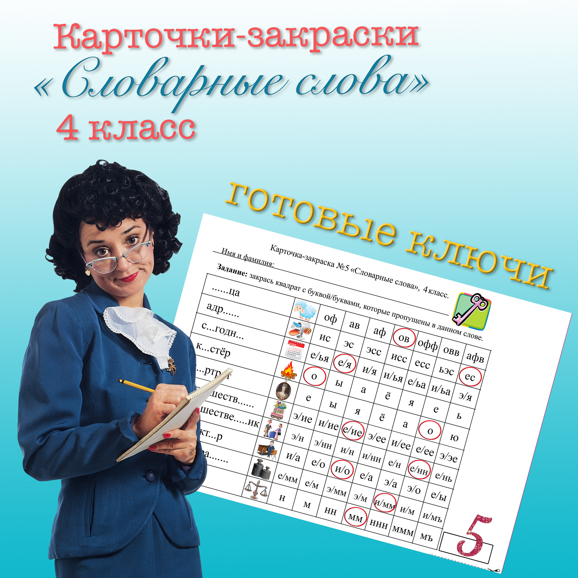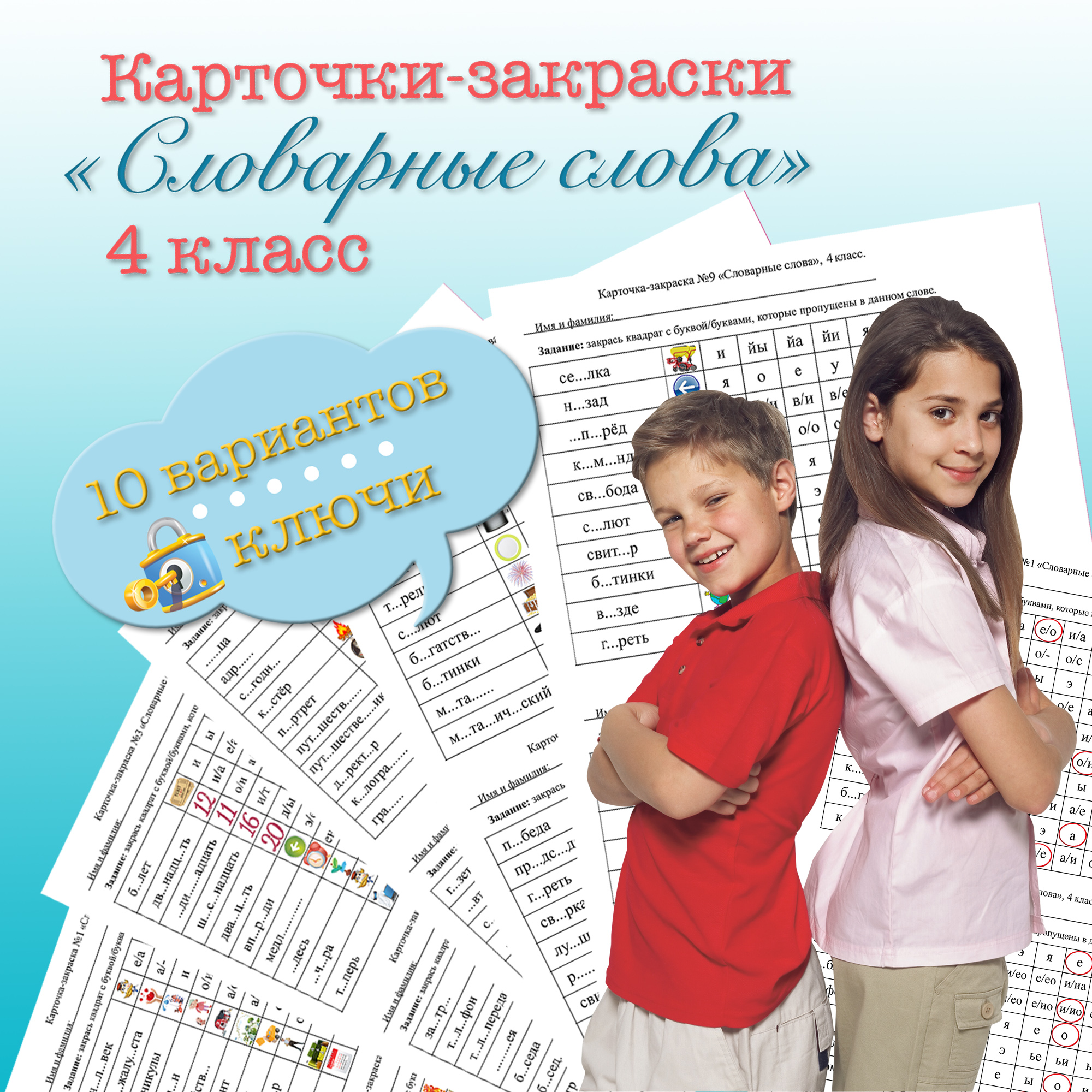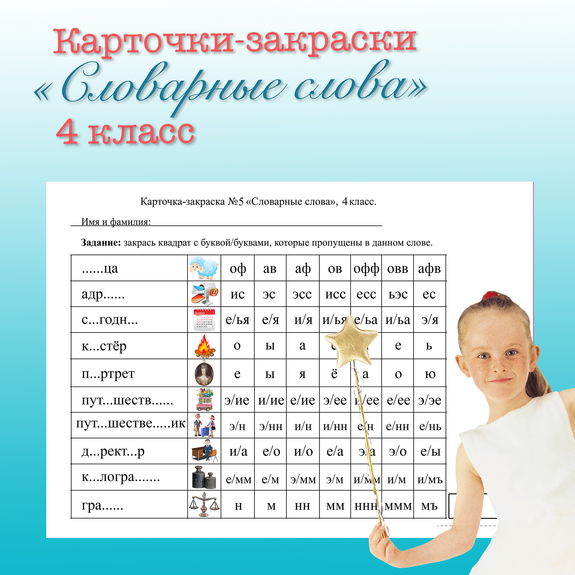 Набор карточек-закрасок по словарным словам для 4 класса