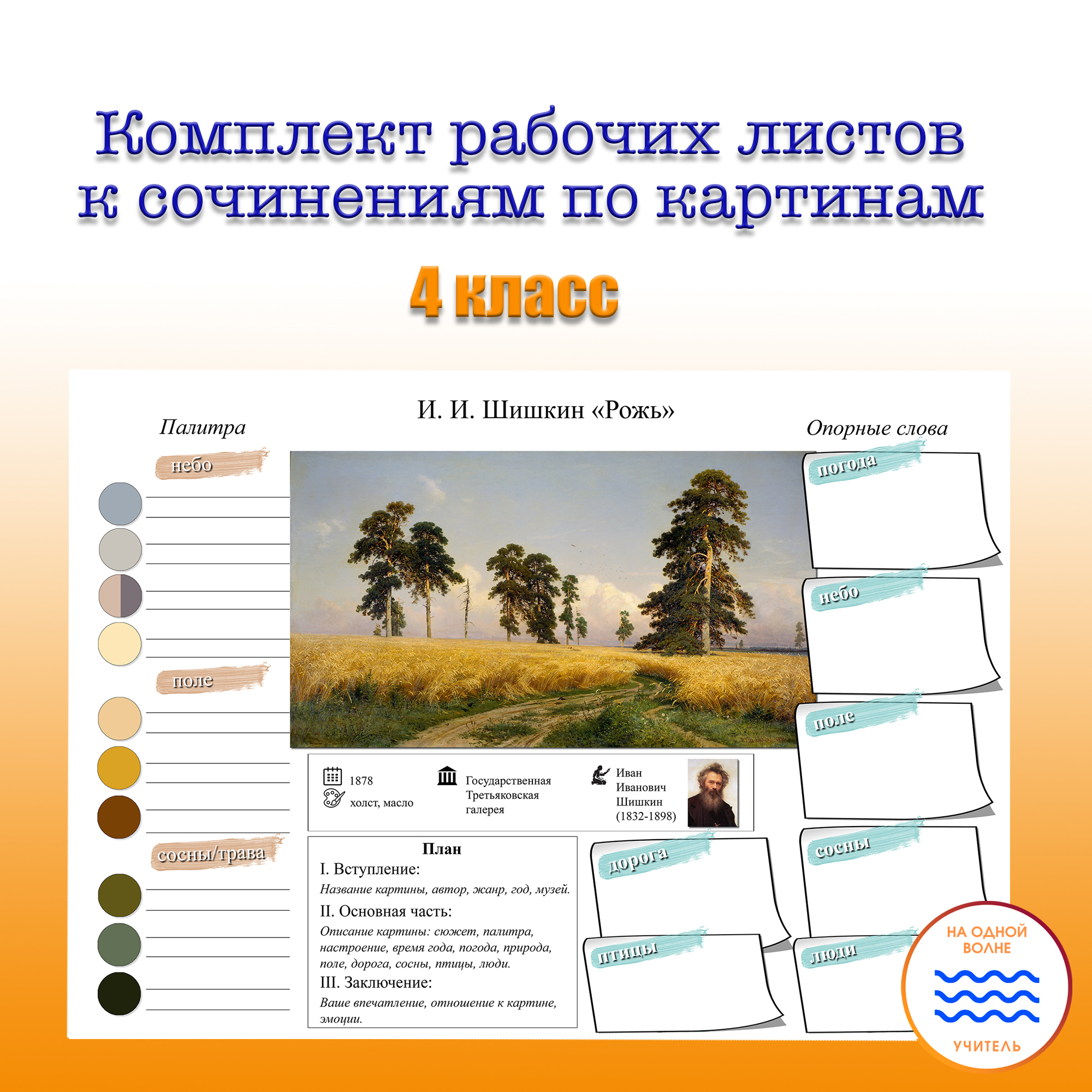 Комплект рабочих листов к сочинениям по картинам - это полный материал на весь уч. год! Наглядный и эффективный вариант подготовки к написанию сочинения. Обучение детальному анализу картины. Развитие навыков написания структурированного сочинения.