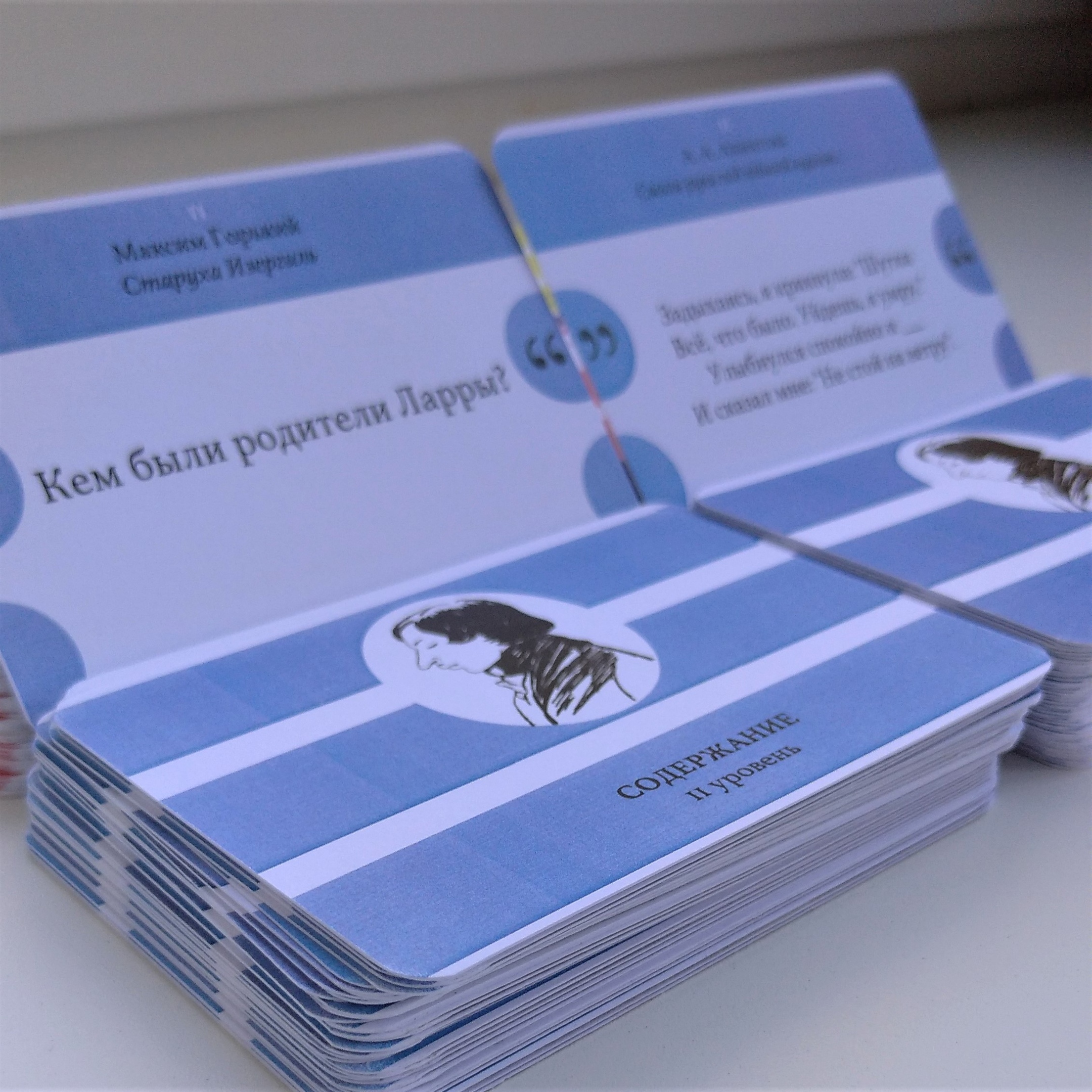 Ко второму уровню относятся вопросы по произведениям, которые изучаются с 7 по 9 класс. В комплект входит