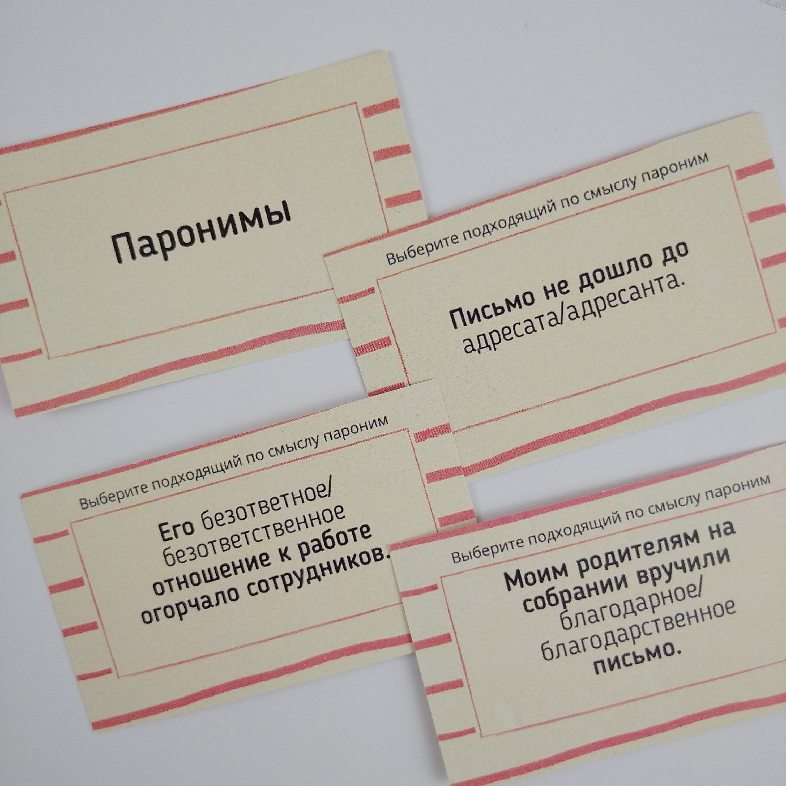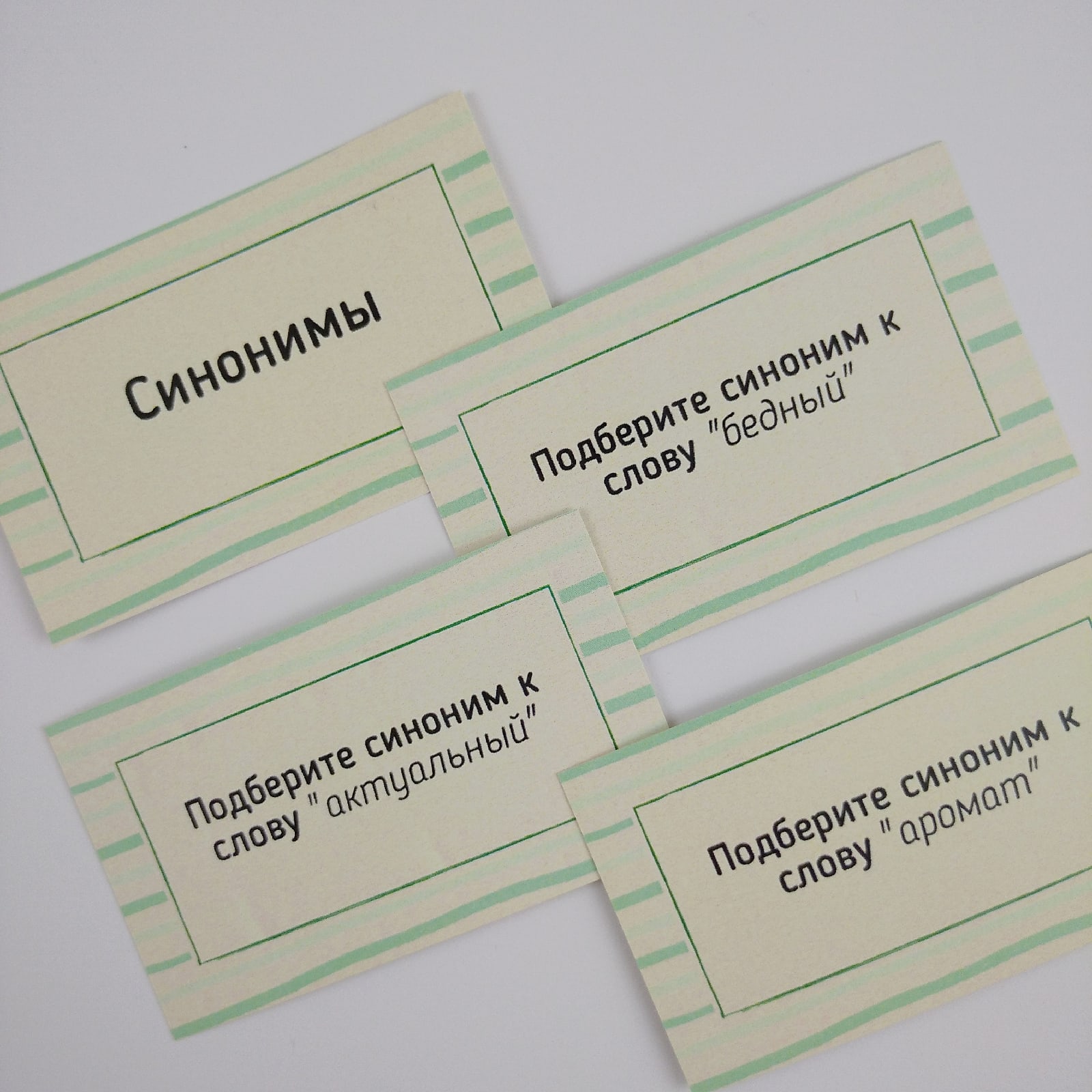 Каждый набор карточек содержит свой тип задания: