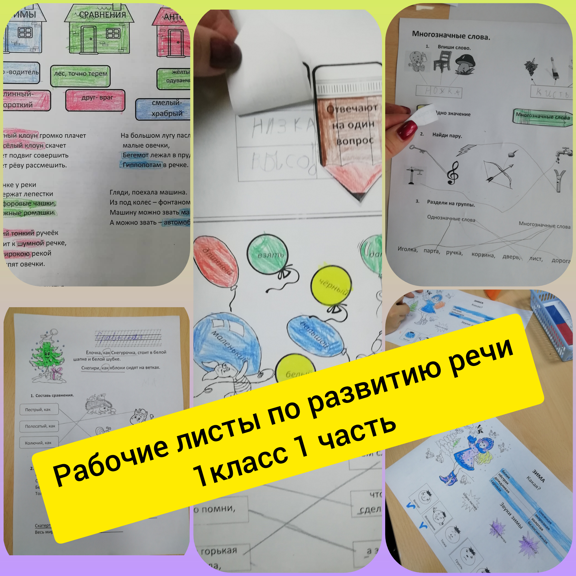 В папке представлены рабочие листы по 12 темам. Разработаны для проведения уроков развития речи в 1 классе.