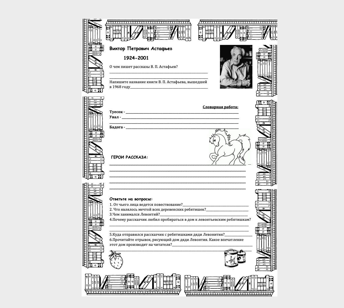 Рабочий лист к рассказу Конь с розовой гривой