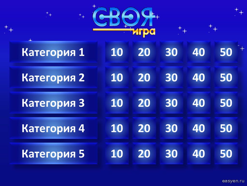 Бесплатный озвученный шаблон игры "Своя игра" на все случаи жизни для любых классов