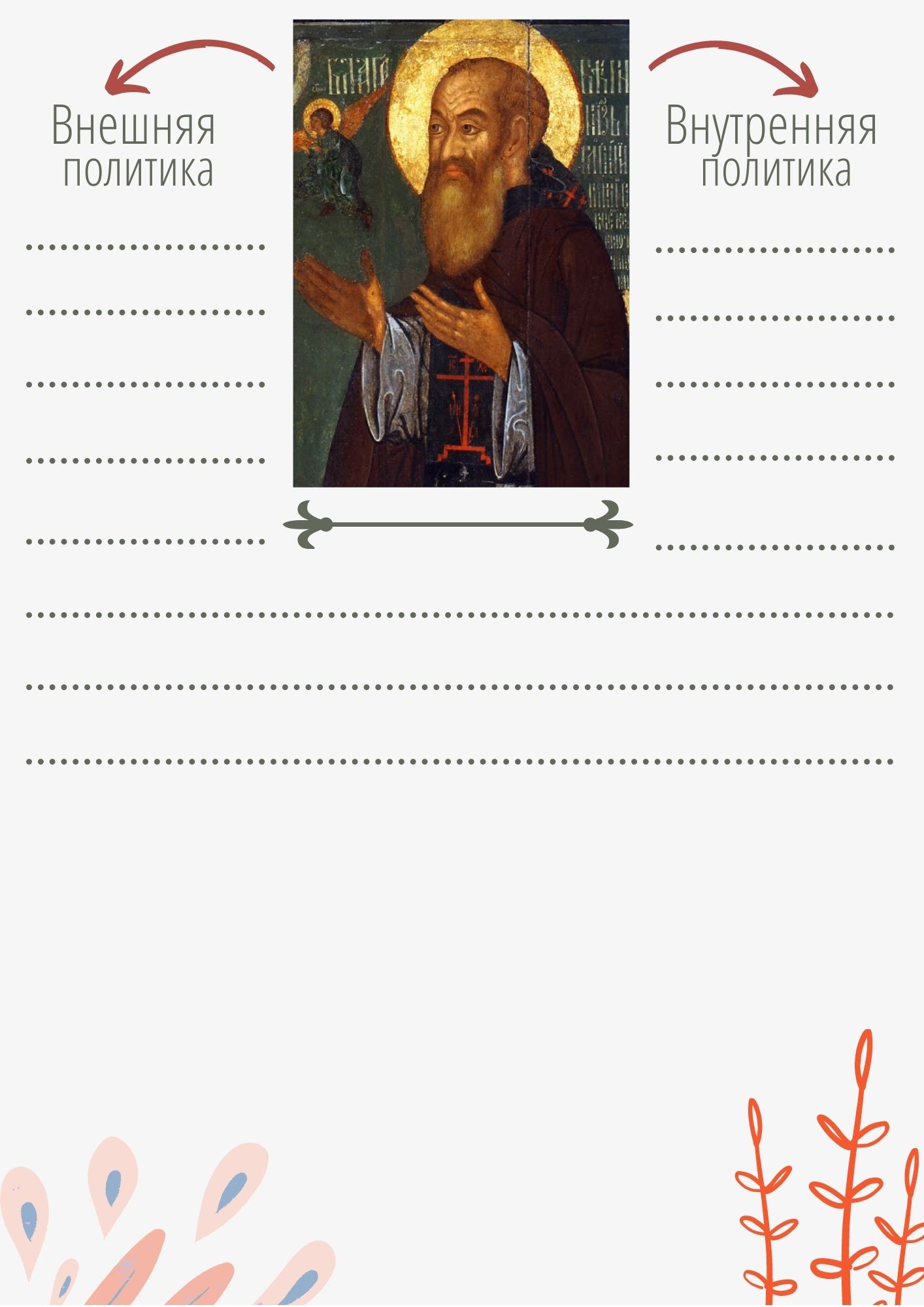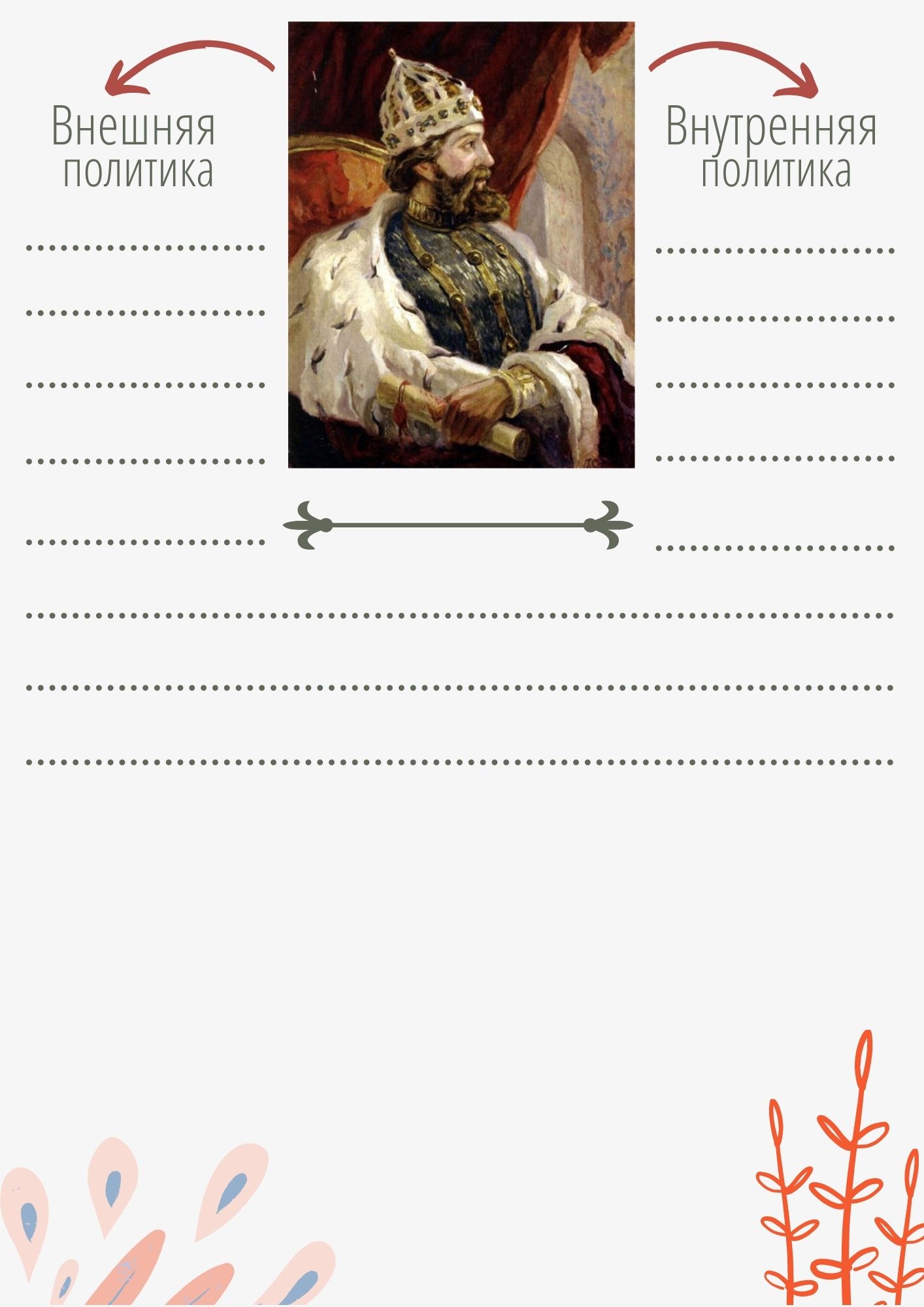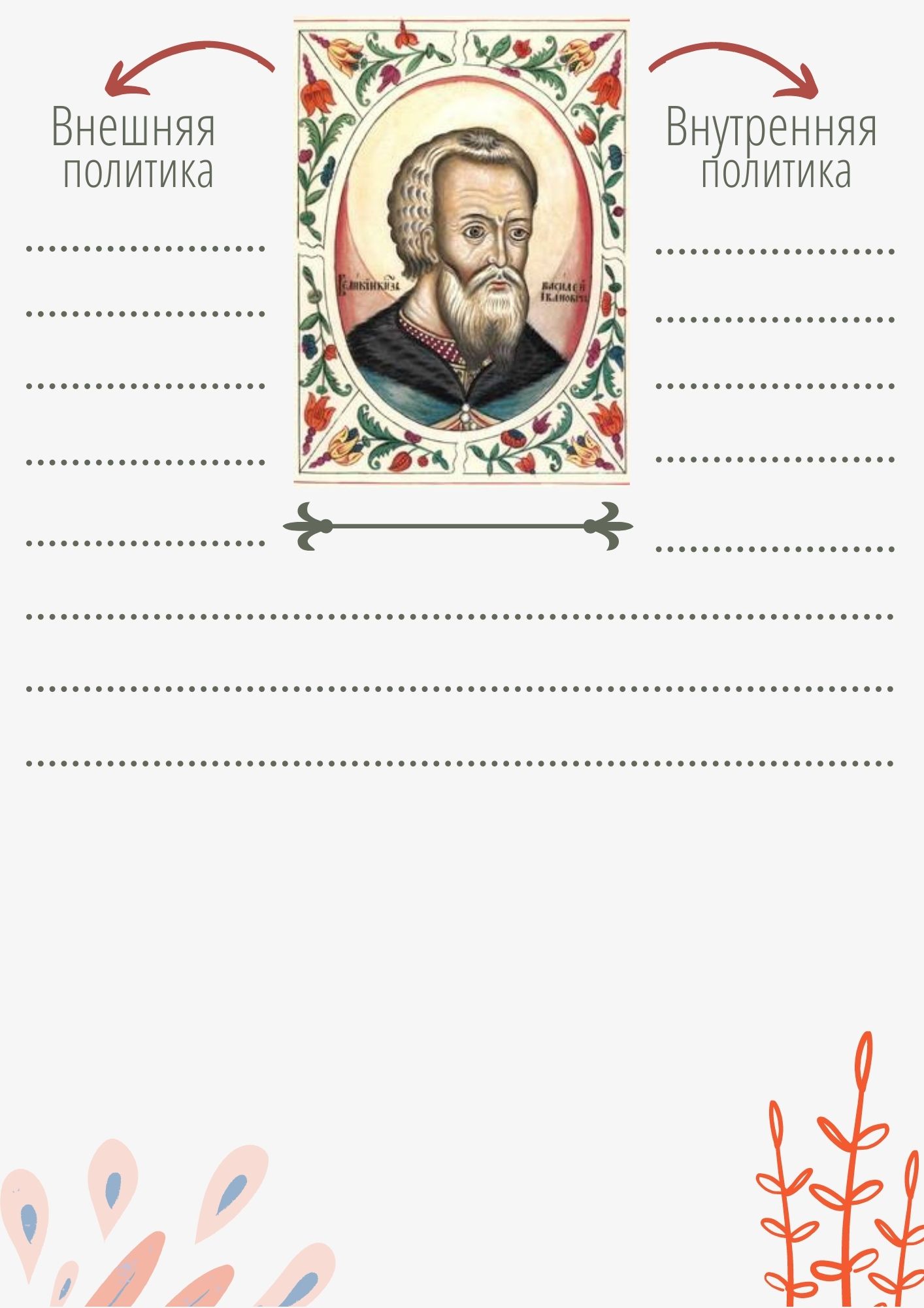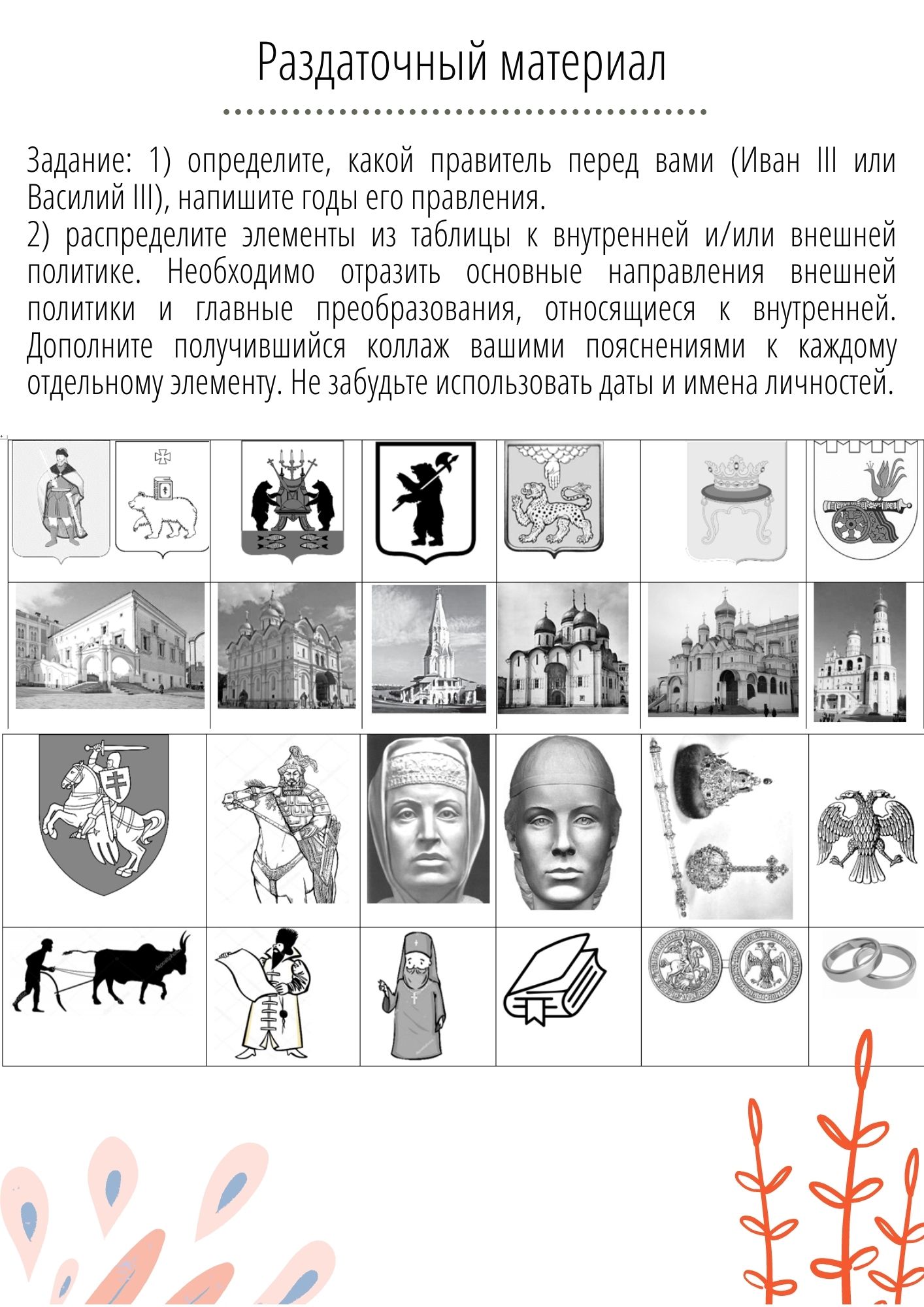 Как сделать урок истории занимательным?! Материал для повторения и обобщения знаний по Ивану III и Василию III. В необычной творческой форме ребята самостоятельно смогут повторить внутреннюю и внешнюю политику данных исторических личностей. В ходе работы обучающиеся смогут повторить основные памятники архитектуры Московского кремля, гербы городов, присоединенных к Московскому княжеству в изучаемый период и т.д.