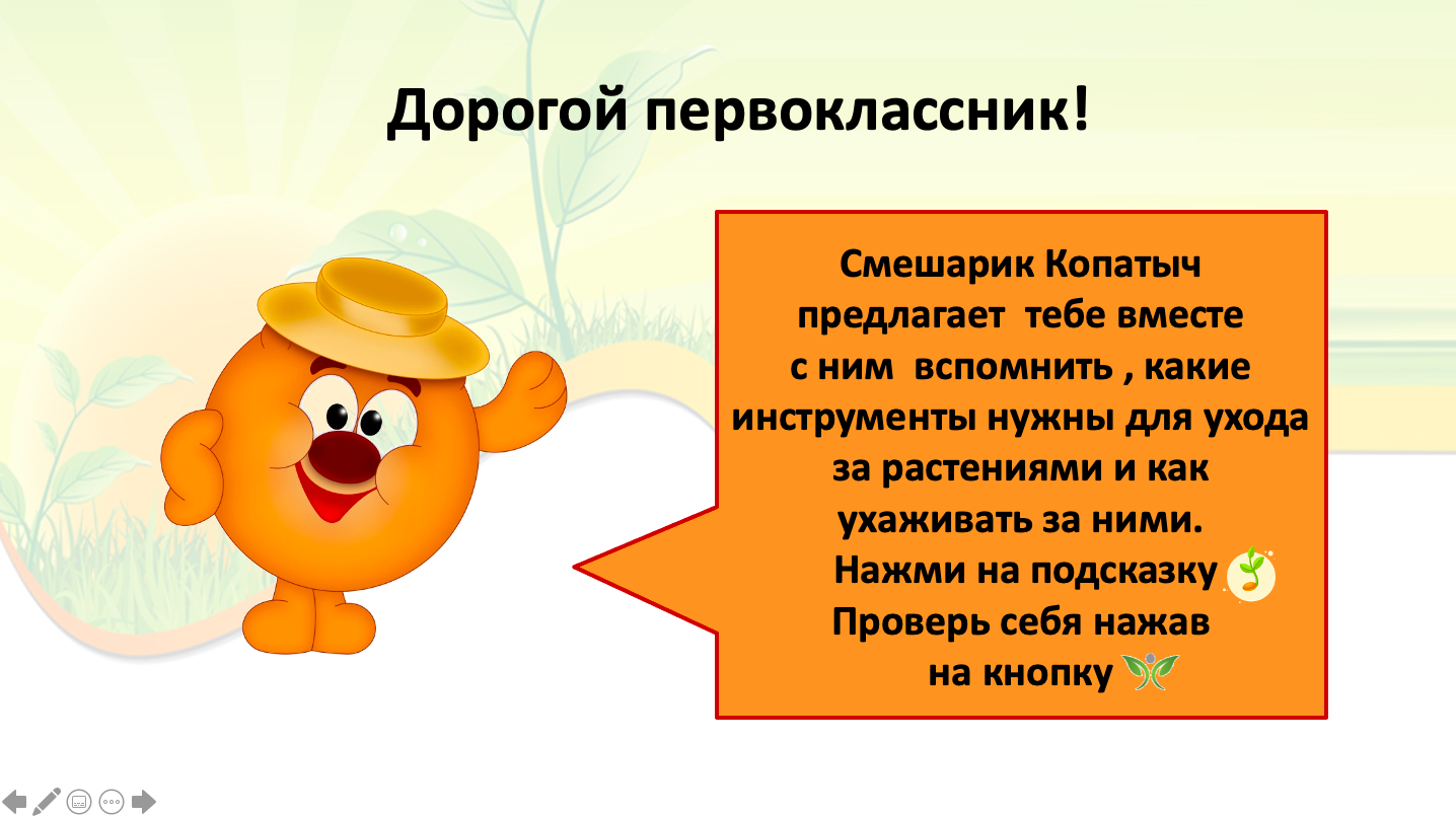 Данный ресурс разработан по предмету естествознание для обучающихся 1 класса по сквозной теме «Растения». Это интерактивное пособие можно использовать как дополнительный материал по теме: «Как ухаживать за растениями». Благодаря этому ресурсу реализуется цель обучения:1.2.1.5 описывать способы ухода за культурными растениями.