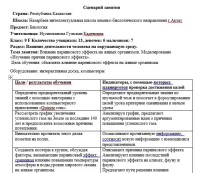 Конкурсный краткосрочный план урока по теме: " Влияние парникового эффекта на живых организмов. Моделирование «Изучение причин парникового эффекта»" для 9 класса.