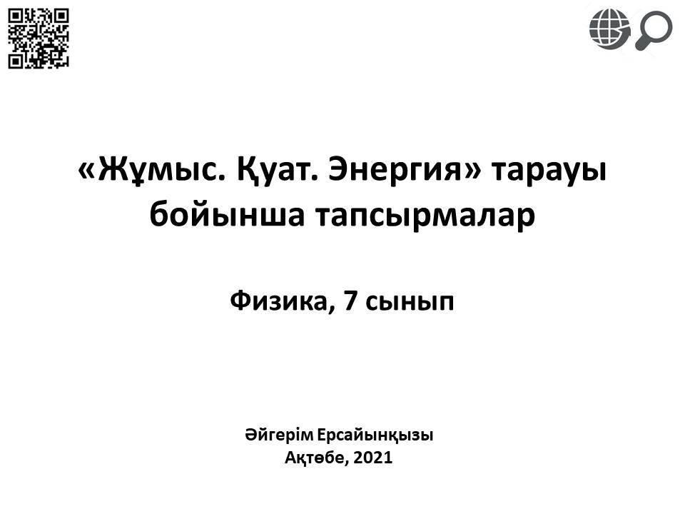 «Жұмыс. Қуат. Энергия» тарауы бойынша тапсырмалар