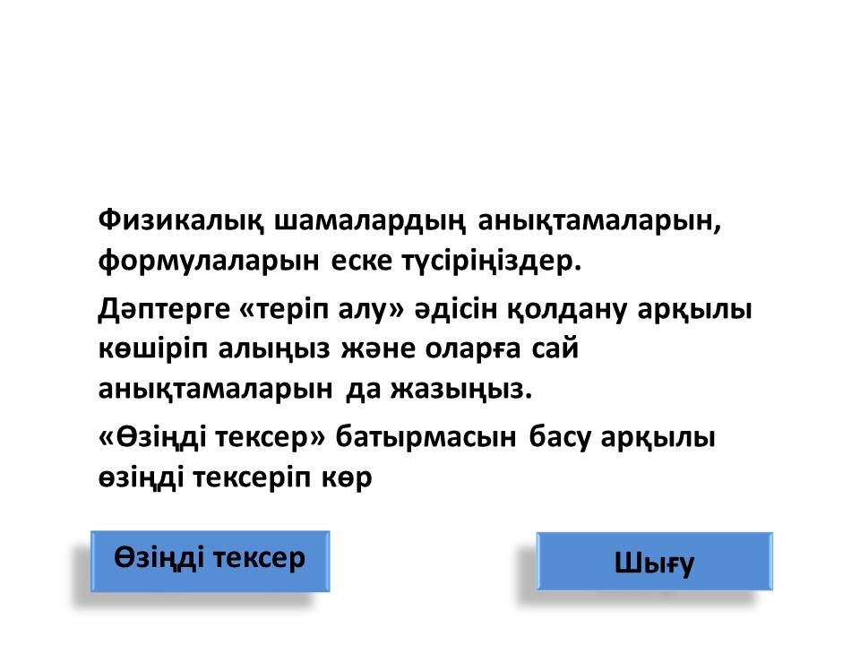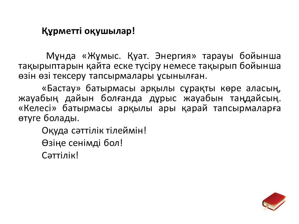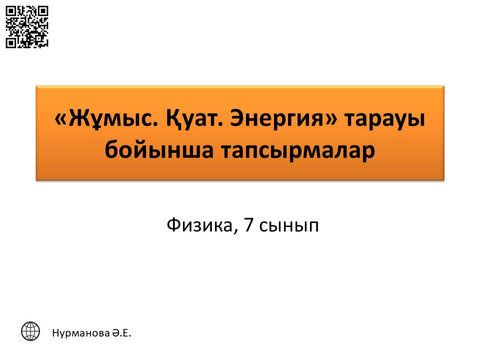 "Жұмыс. Қуат. Энергия" тарауы бойынша тапсырмалар