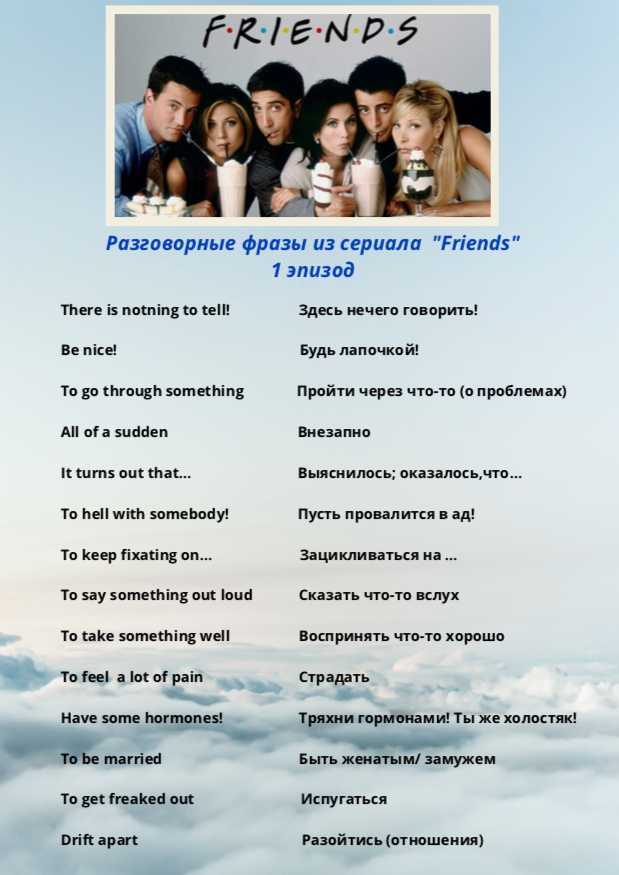 Чек-лист с разговорными фразами из сериала "Friends" 1 серия