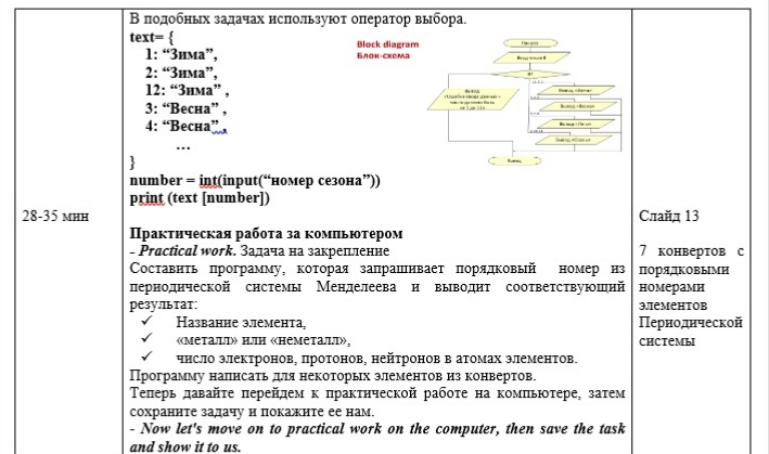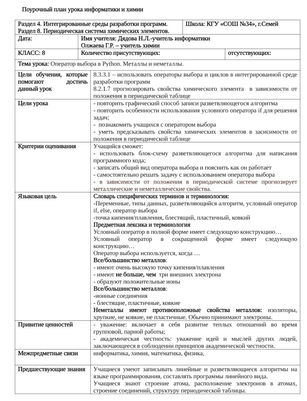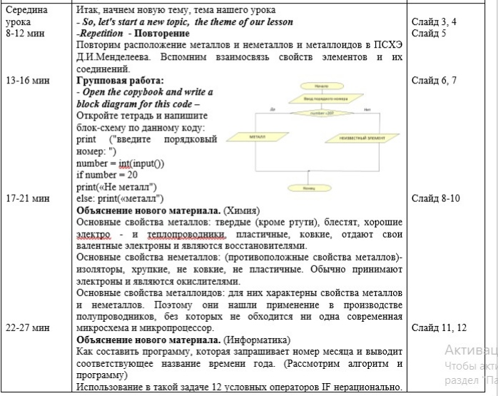 Интегрированный урок информатики и химии с элементами английского языка: "Оператор выбора. Металлы и неметаллы"