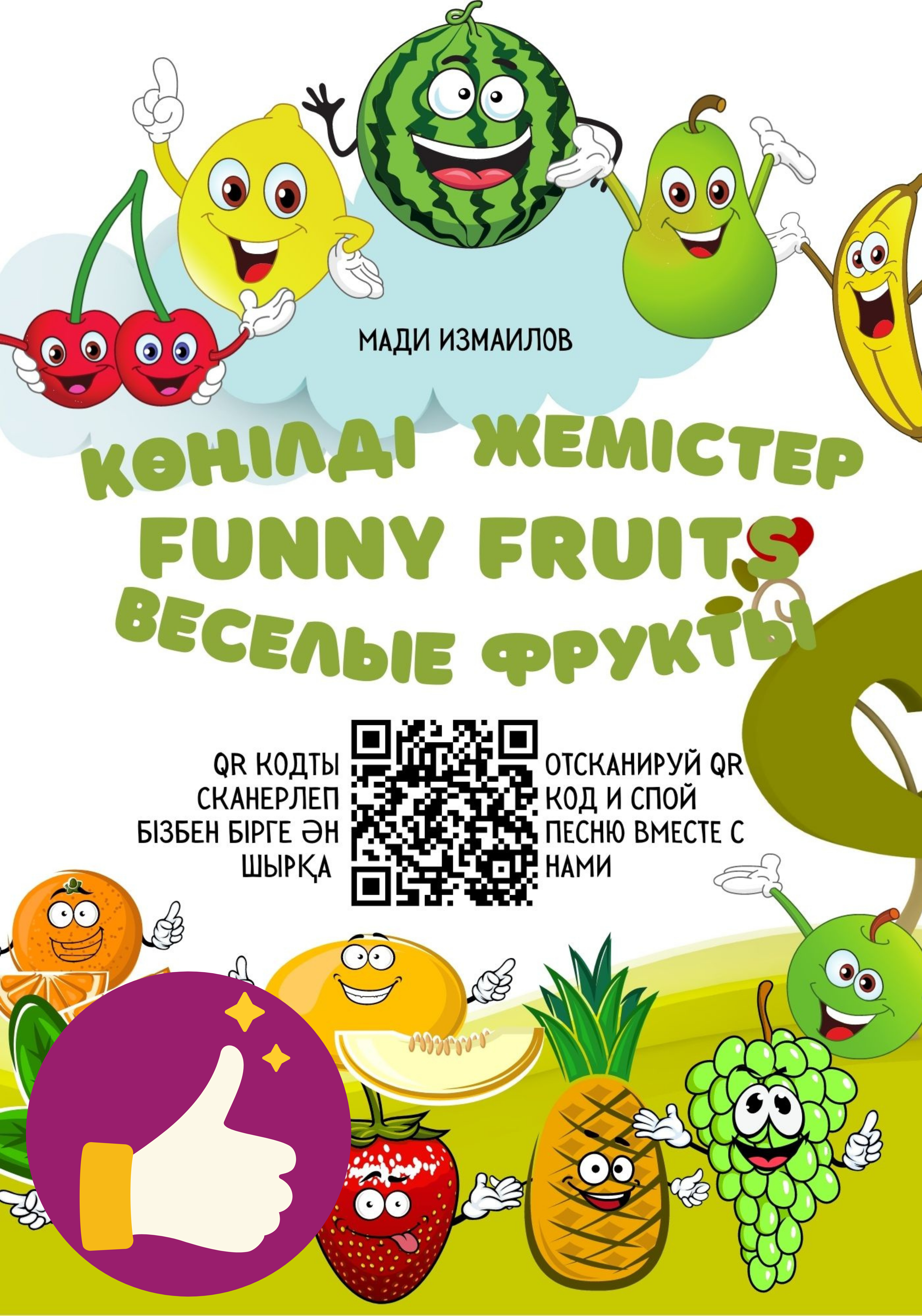 Данная книжка содержит название фруктов на казахском, русском и английском языках, сканируя QR код камерой вашего смартфона вы сможете петь и слушать песни про фрукты, а также танцевать вместе с детьми