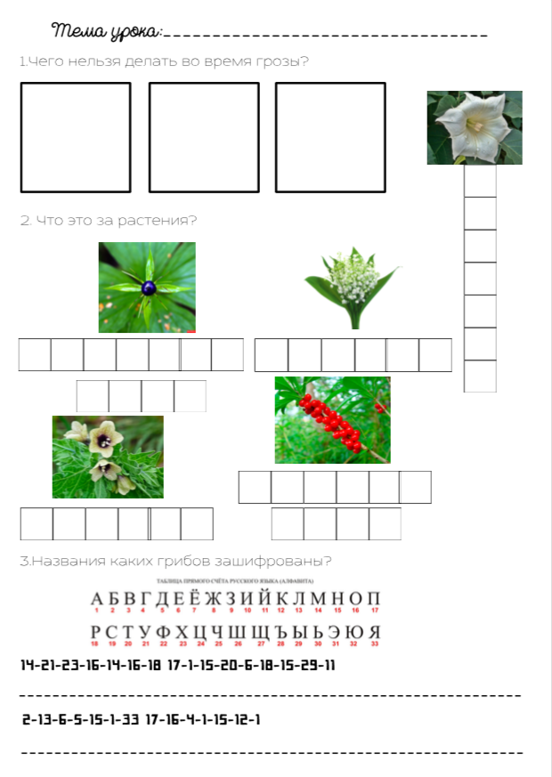 Рабочий лист по окружающему миру
