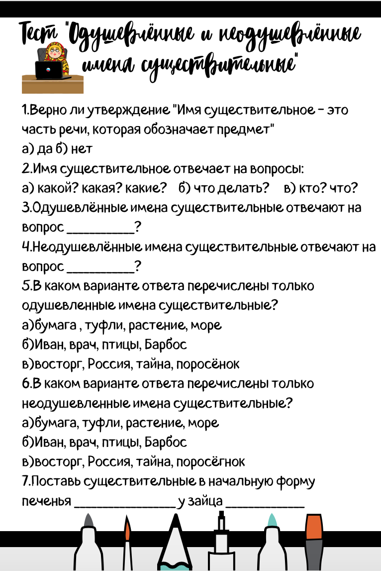 Тест "одушевленные и неодушевленные имена существительные"