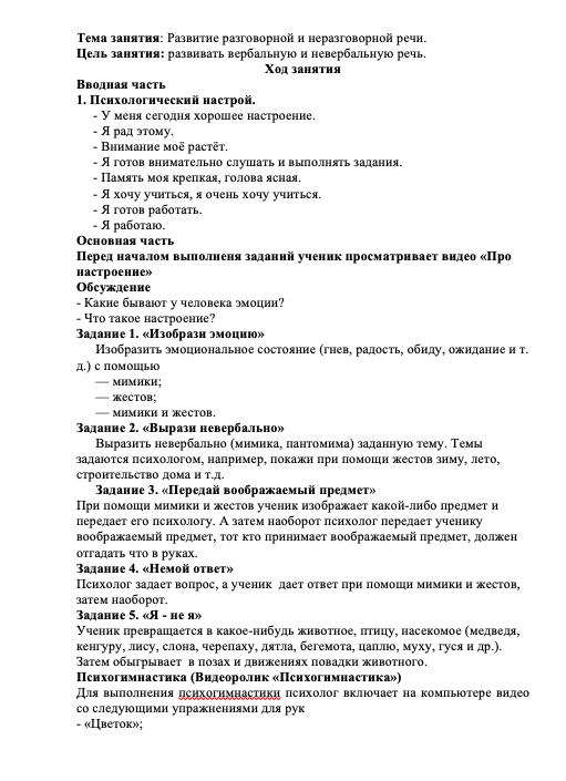 Психологическое занятия: Развитие разговорной и неразговорной речи